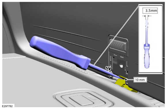 Insert a 3.5 mm wide flat-bladed screwdriver through the access cover opening 10 mm deep into the RH side of the slot.