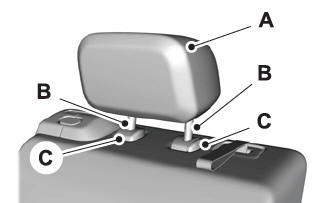 Pull the fold strap (C). Pull the head restraint back up to reset.