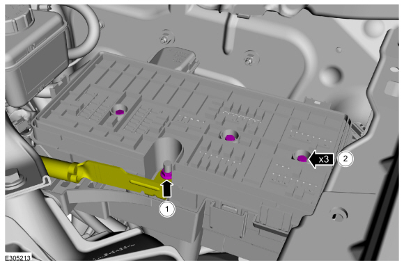 NOTICE: Siphon the brake fluid from the HCU/EBB reservoir, if the reservoir is not emptied there will be a large amount of brake fluid spilled in the engine compartment.