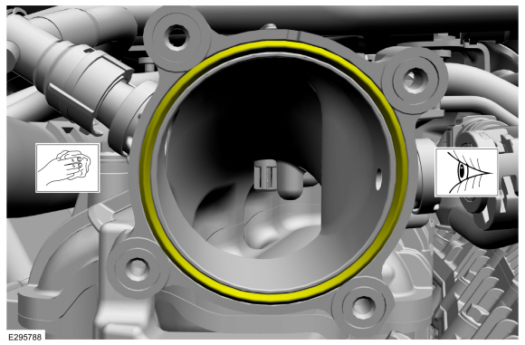 NOTE: When connecting the throttle body electrical connector engage the red connector locking tab after fully installing the throttle body electrical connector. The red tab will not slide forward unless the throttle body electrical connector is fully installed.